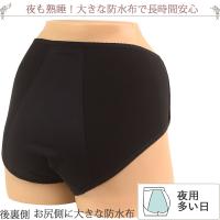 お尻側に大きい防水シートがあるから夜の漏れも長時間安心、サニタリーショーツ 夜用 ナイト用 生理用パンツ。