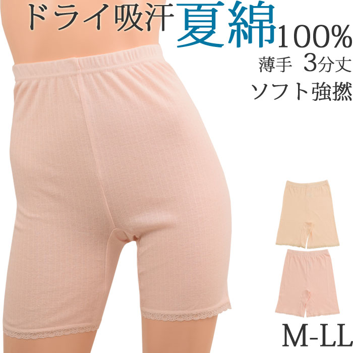 夏に涼しい サラサラ コットン 100% 吸汗 お尻 汗じみ防止 レディース ズボン下