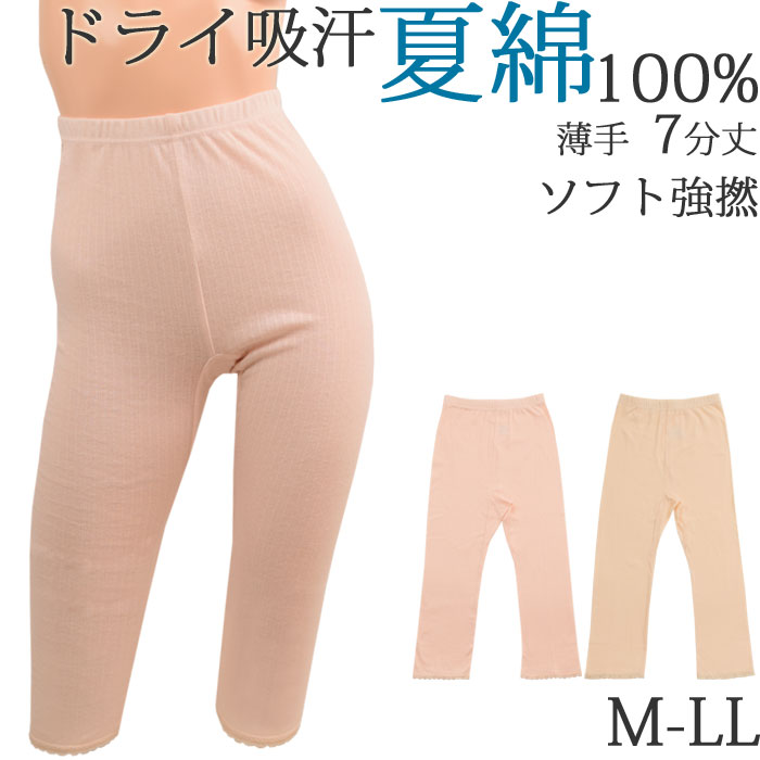 夏に涼しい サラサラ コットン 100% 吸汗 お尻 汗じみ防止 レディース ズボン下