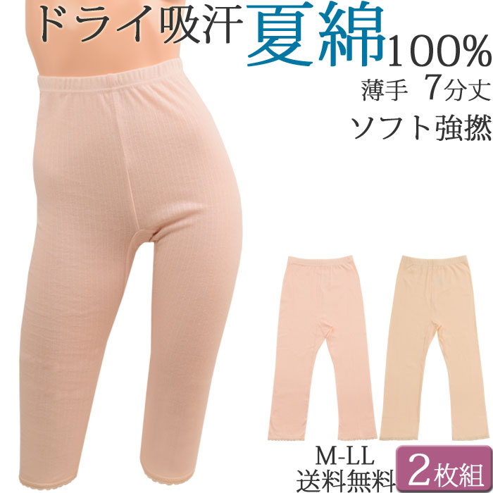 夏に涼しい サラサラ コットン 100% 吸汗 お尻 汗じみ防止 レディース ズボン下
