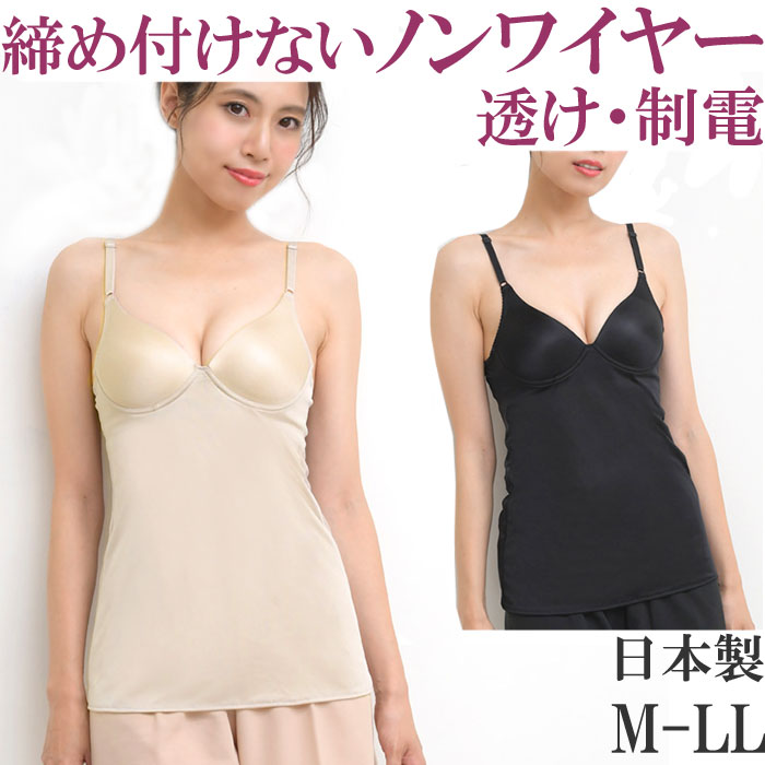 ブラスリップ ブラ キャミソール カップ付き スリップ ランジェリー ノンワイヤーブラ 大きいサイズ ll L M ブラキャミ 透けない カップ付き スリップ 日本製