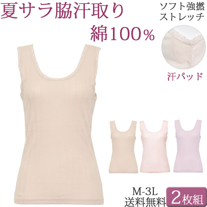 夏に涼しい サラサラ コットン 100% レディース 脇汗インナー 綿100
