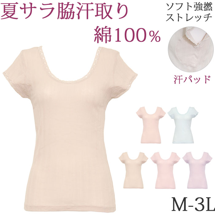 夏に涼しい サラサラ コットン 100% レディース 脇汗インナー 綿100