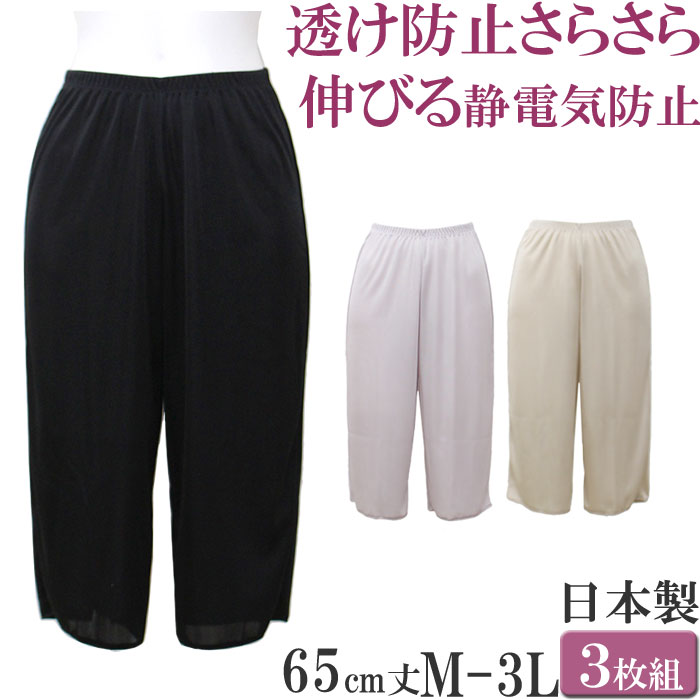 ペチコート パンツ ロング ペチパンツ 汗染み防止 透けない 静電気防止 汗取りインナー レディース 下着 セット 3枚 日本製 大きいサイズ 3L ll L M 7分丈