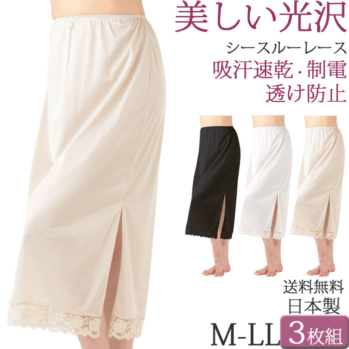 さらさら汗をかいてもベタつかない軽い ペチコート ロング。トリコット の 透け防止 ペチコート 汗取りインナー レディース スリップ ランジェリー。