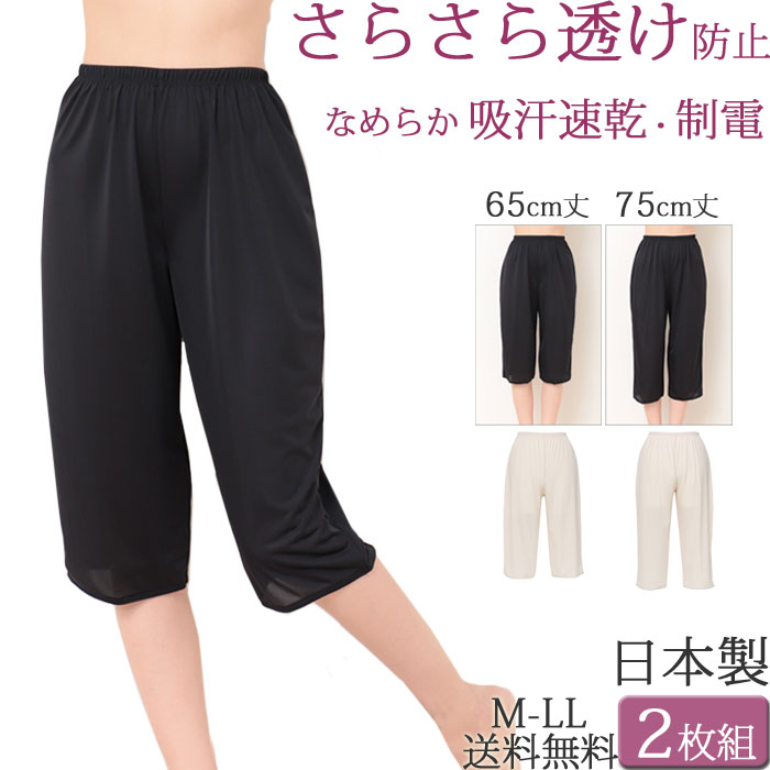 透け防止さらさら汗をかいてもベタつかない軽い ペチパンツ。シンプルなトリコットの 透け防止 ペチコート 涼感 汗取りインナー レディース ペチコート ロング丈。パチパチとアウターにまとわりつかない静電気を抑える制電加工 の スリップ ランジェリー。