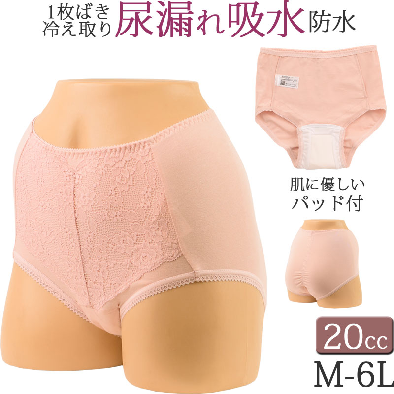 尿漏れパンツ 女性用 失禁パンツ 吸水ショーツ 尿もれ レディース 生理用 綿 レース おしゃれ 深ばき 20cc [M:1/3]大きいサイズ 6L 5L 4L 3L LL L M