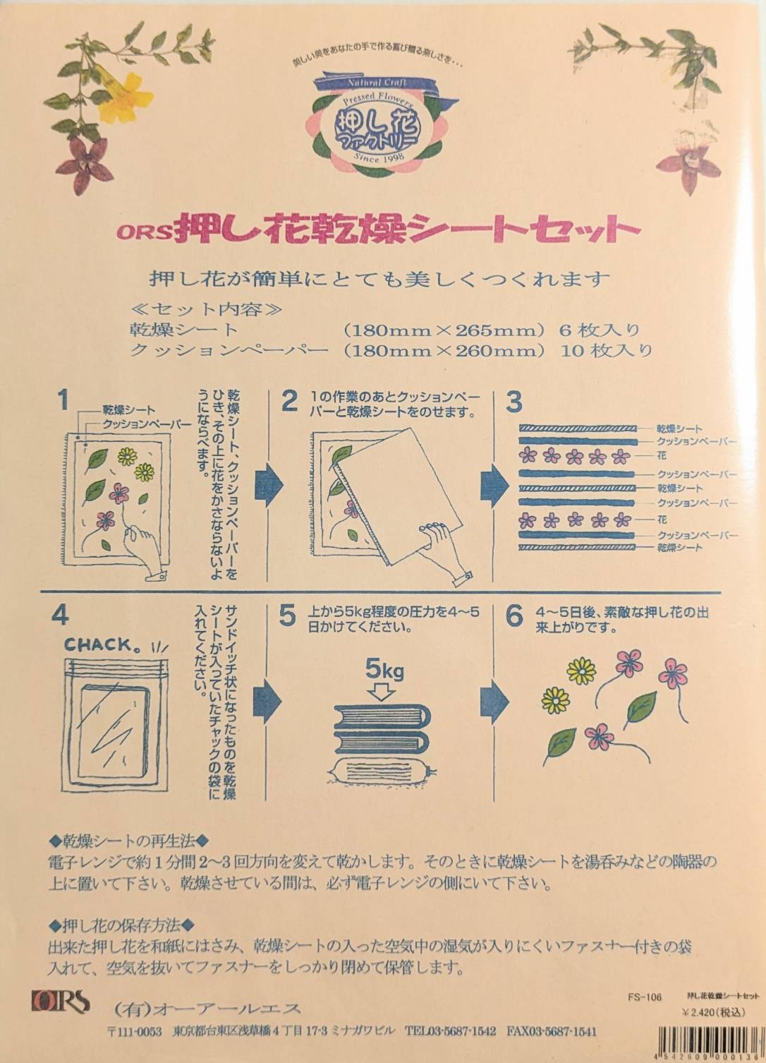 有限会社オーアールエス様が実店舗に卸している中でとても人気な「押し花入門作成キット FS-107」も弊店ではお取り扱いさせていただいております。