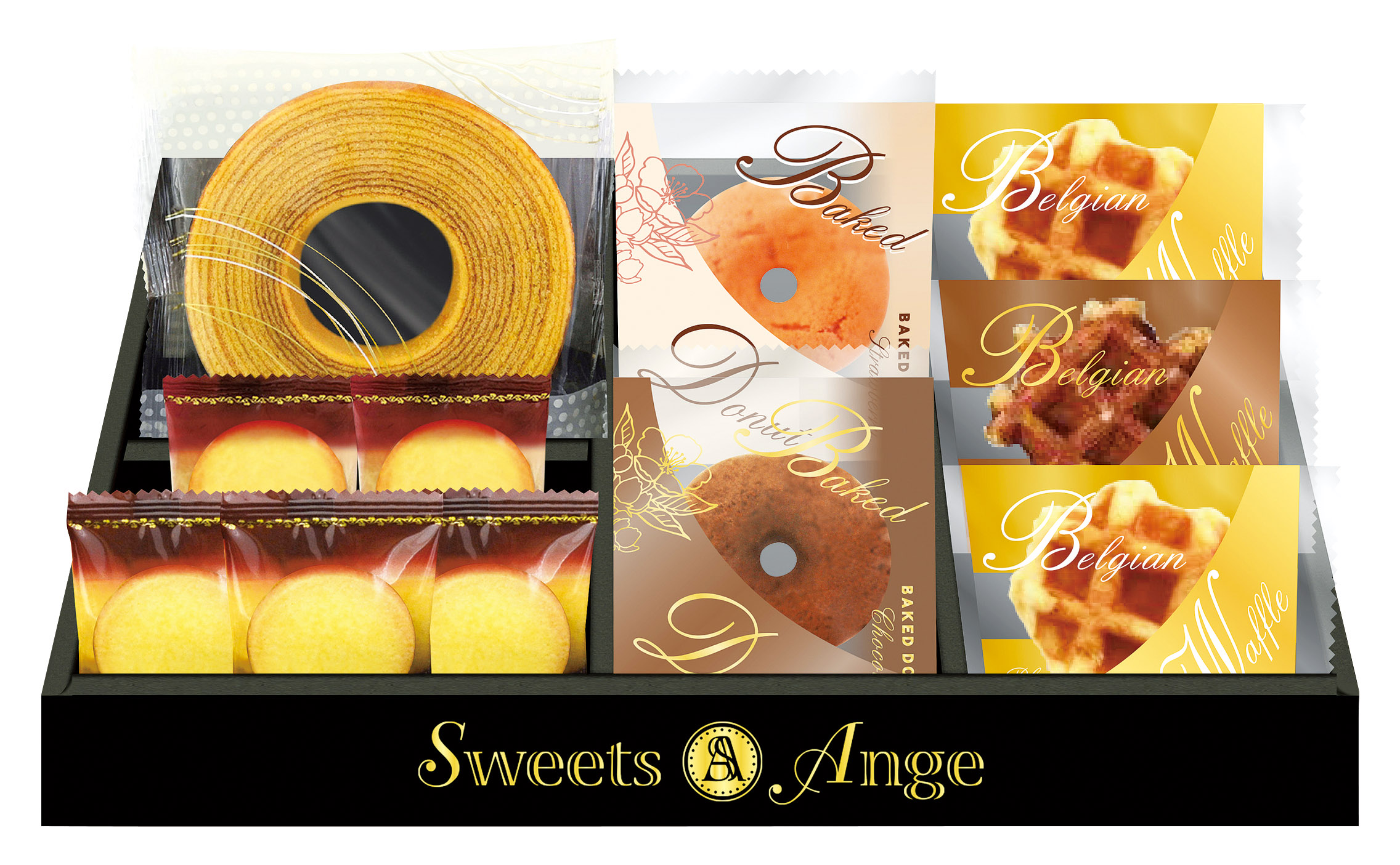 | 商品内容 | ■●セット内容:ベルギーワッフル(プレーン)×2、ベルギーワッフル(ショコラ)・ミルクバウムクーヘン(直径約10.5cm)・ベイクドドーナツ(ストロベリー)・ベイクドドーナツ(ショコラ)各1・プレーンクッキー×5 ●加工地:日本 |
