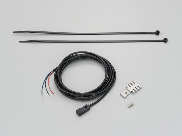 ほとんどの車両からスピードパルスを発生させることができる非接触センサー。取り付けはフロントフォークのボトムケースに専用ステーをタイラップ等で固定するだけの簡単設計。電気式スピードメーターを使いたいのに使えなかった方に朗報です。