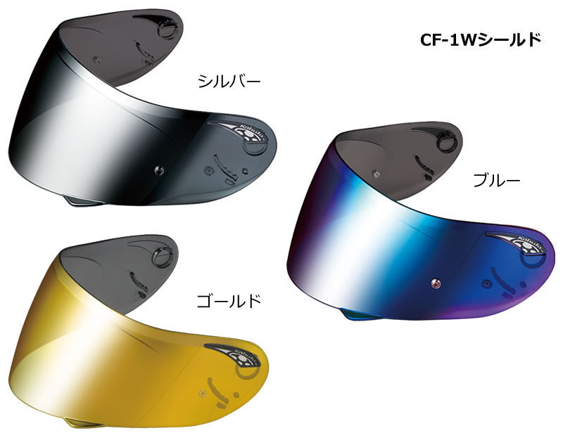 OGK(オージーケーカブト) CF-1Wシールド シルバーミラー、ブルーミラー、ゴールドミラー