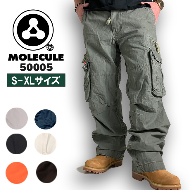 | カーゴの老舗ブランドMOLECULEのデザインカーゴ50005です。 ゆったりとしたシルエットと細部にこだわったデザインが人気の秘訣です。 ファスナータイプなので着衣がしやすくなっております。 |