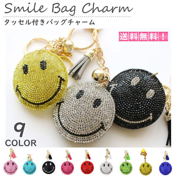 バッグチャーム キーホルダー かわいい チャーム キーリング タッセル付き キラキラ ニコちゃん スマイル レディース キーリング おしゃれ アクセサリー