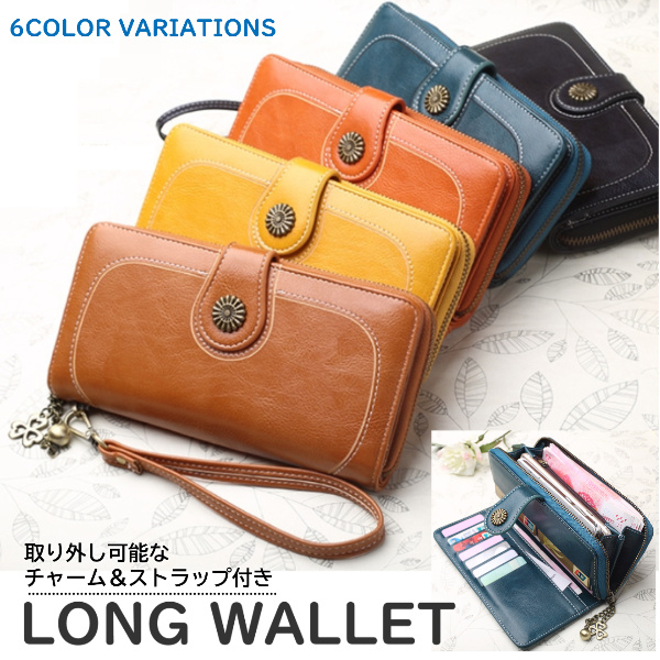 長財布 レディース カード入れ多数 大容量 50代 40代 30代 使いやすい かぶせ メンズ おしゃれ ストラップ チャーム ボタン 小銭入れ 多機能
