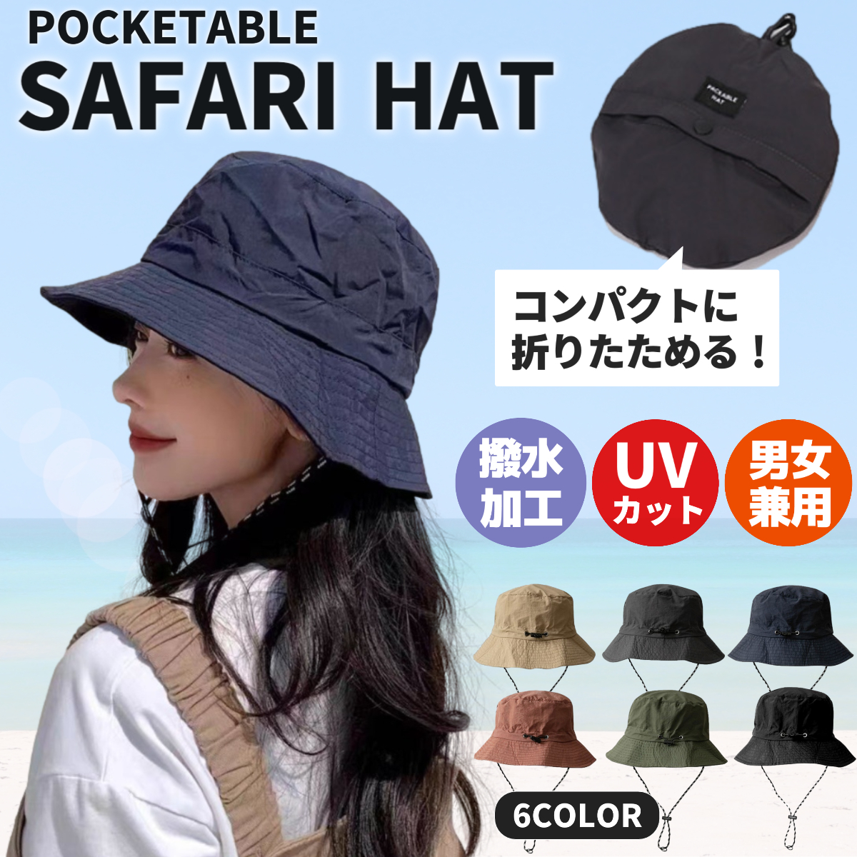撥水 折りたたみ サファリハット コンパクト