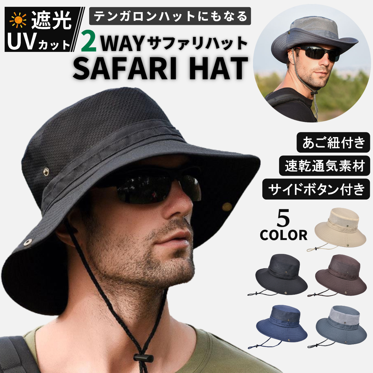 2WAY 日焼け防止ハット サファリハット アウトドアハット