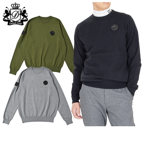 セーター クルーネック ハイゲージニット ロゴワッペン 3Lまでご用意 ゴルフウェア