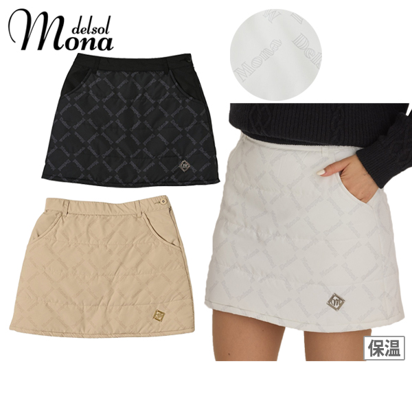 スカート 中綿スカート 保温 防風 ウエスト後ろゴム仕様 総柄ロゴプリント メタルロゴプレート付 台形シルエット ゴルフウェア