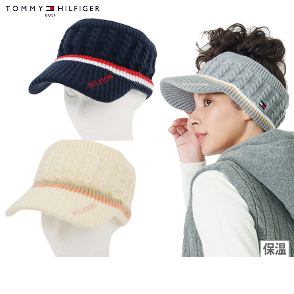 サンバイザー ニット素材 裏ボア 保温 ケーブル編み 配色ラインデザイン ロゴ刺繍 ゴルフ