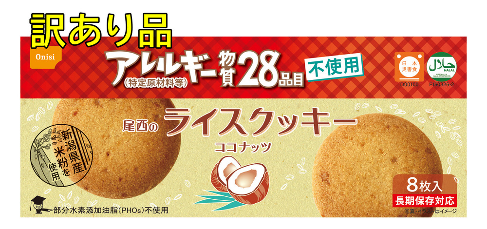 訳あり 尾西食品 尾西のライスクッキー 8枚入り ココナッツ風味 お菓子 非常食 防災食 備蓄 5年保存 (賞味期限:2030年2月 賞味期限が短い商品です))