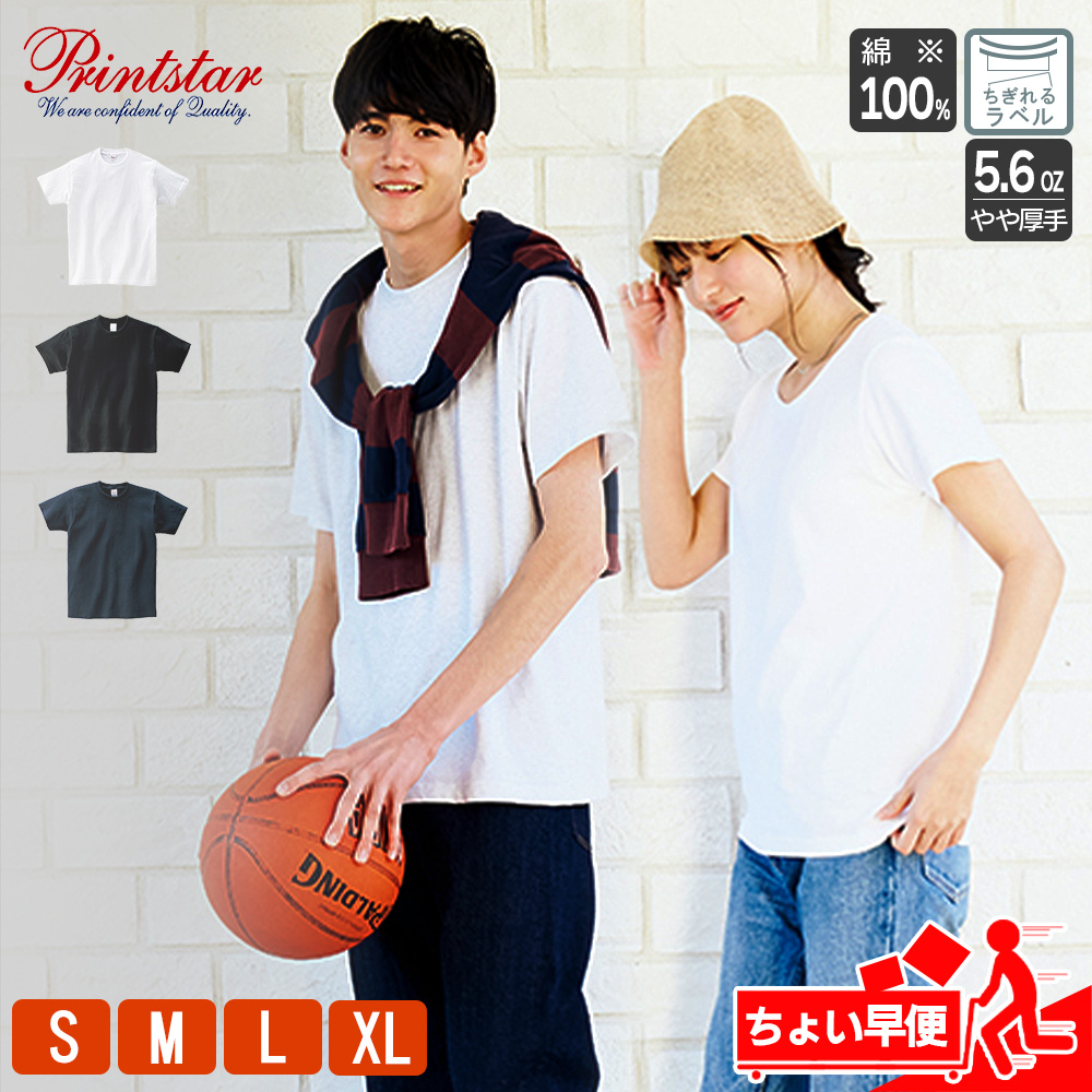 tシャツ メンズ 半袖 無地 レディース 綿100% 黒 白 コットン 厚手 プリントスター(Printstar) ヘビーウェイト 白t 白ティーシャツ 00085-CVT 5.6オンス