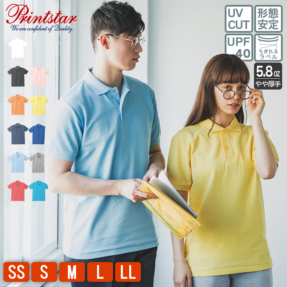 ポロシャツ メンズ 半袖 レディース 無地 白 プリントスター(Printstar) 5.8オンス 00141 NVP