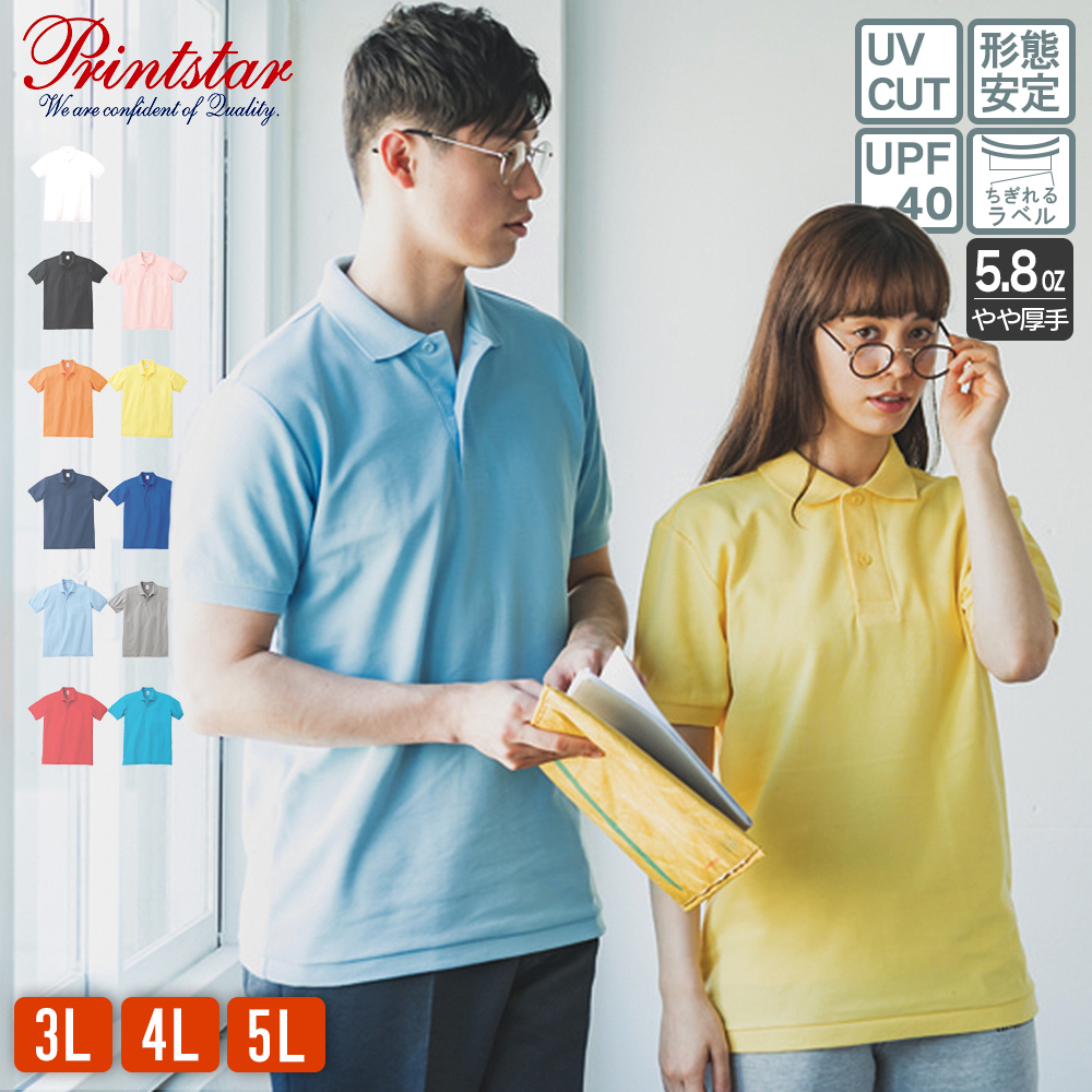 ポロシャツ 大きいサイズ メンズ 半袖 レディース 無地 白 プリントスター(Printstar) 5.8オンス 00141 NVP
