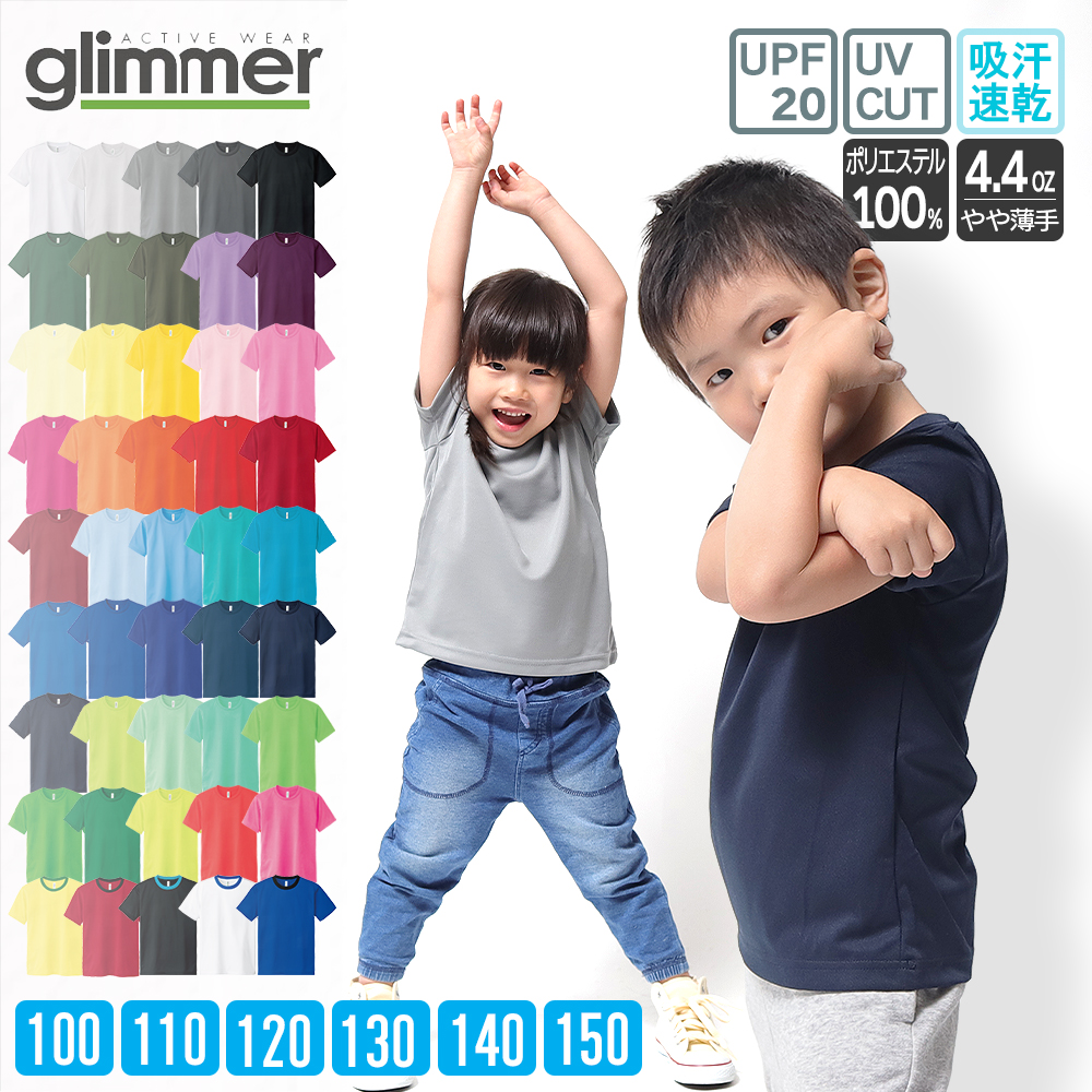 tシャツ 速乾 キッズ 男の子 女の子 Tシャツドライ 速乾性 無地 半袖 白tシャツ 半袖tシャツ 子供 インナー グリマー(glimmer) 00300-ACT 300act 4.4オンス