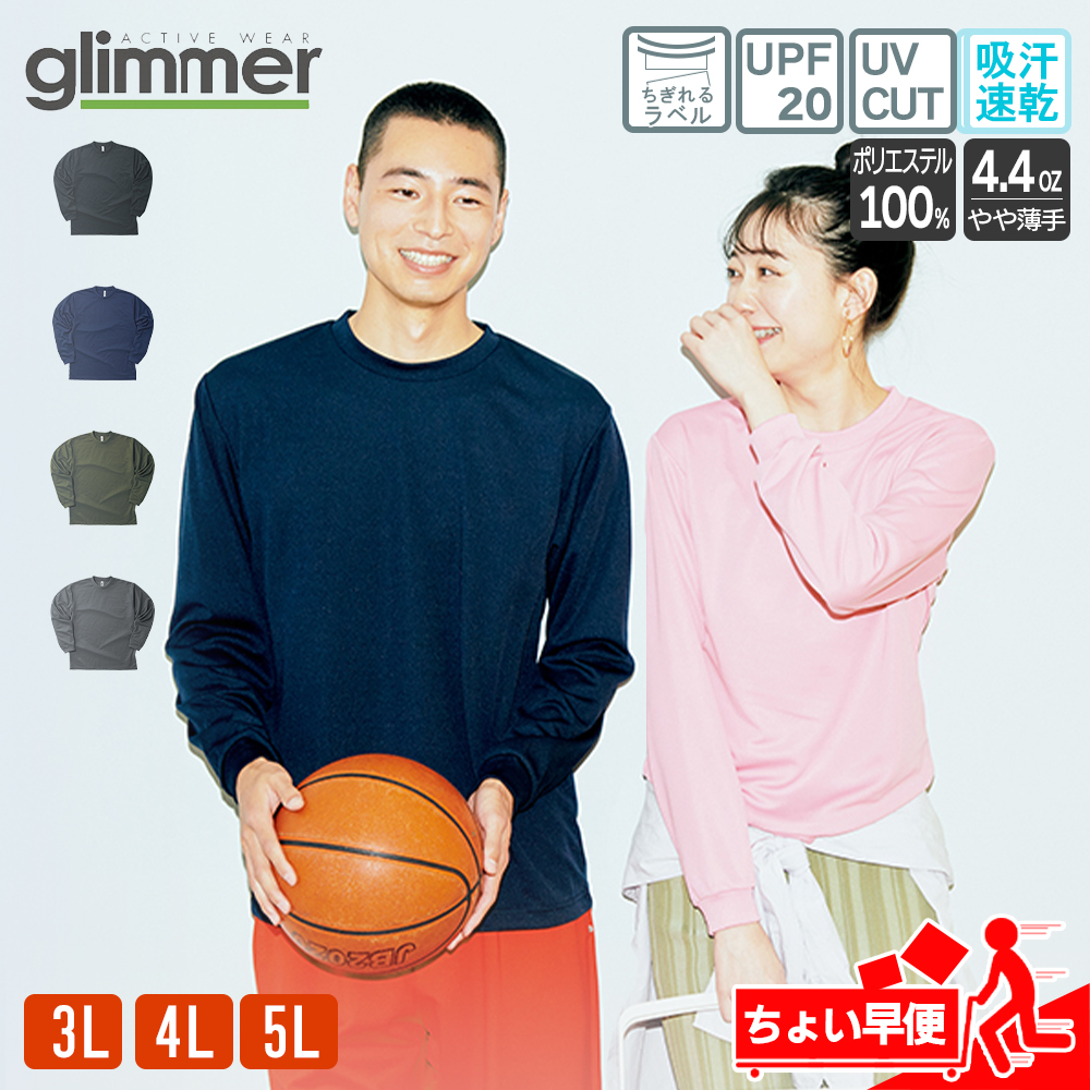 Tシャツ 長袖 メンズ 速乾 レディース 大きいサイズ 無地 ドライ ロンt スポーツ トレーニング ロングスリーブTシャツ グリマー(glimmer) 00304-ALT 4.4オンス