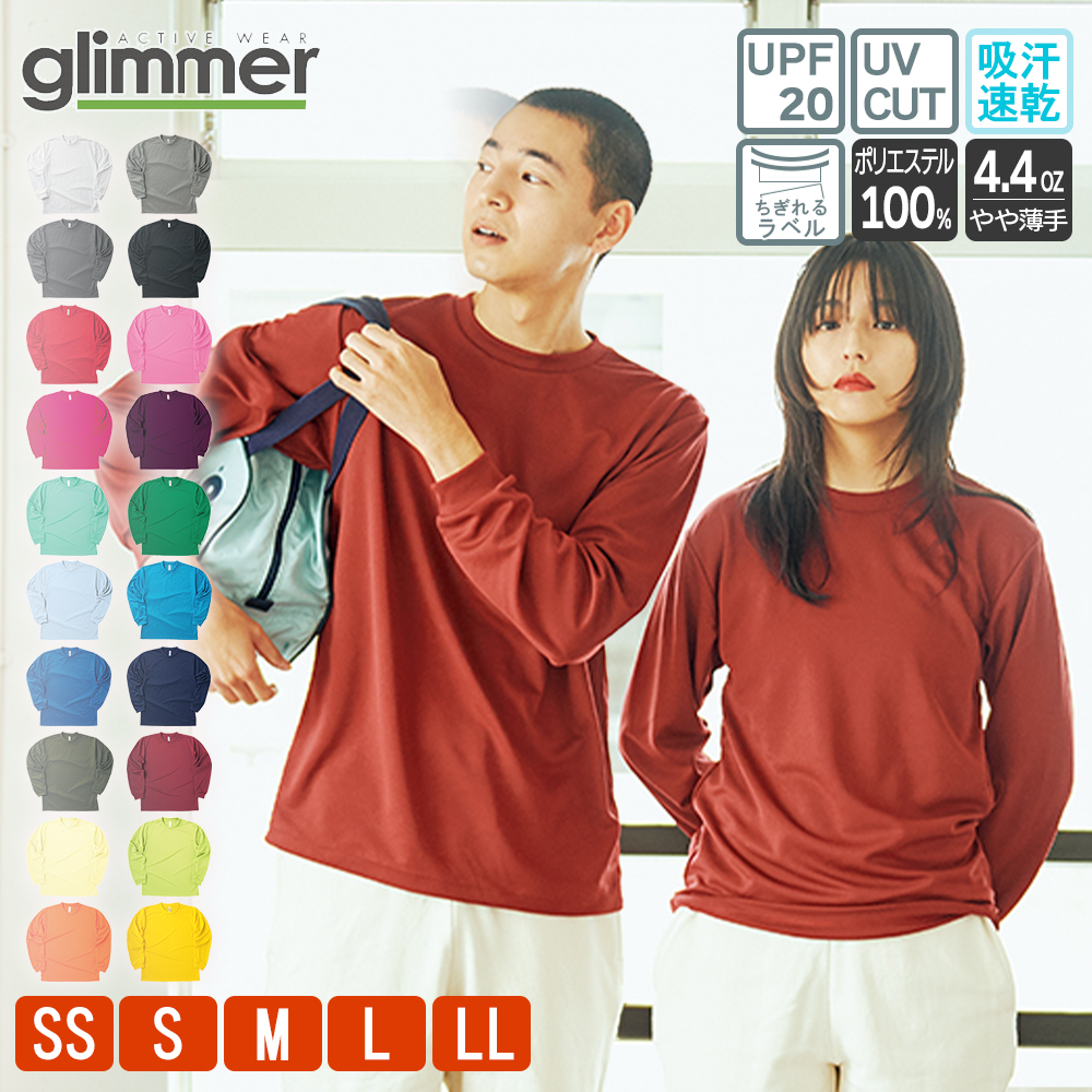 Tシャツ 長袖 メンズ 速乾 レディース 大きいサイズ 無地 ドライ ロンt スポーツ トレーニング ロングスリーブTシャツ グリマー(glimmer) 00304-ALT 4.4オンス