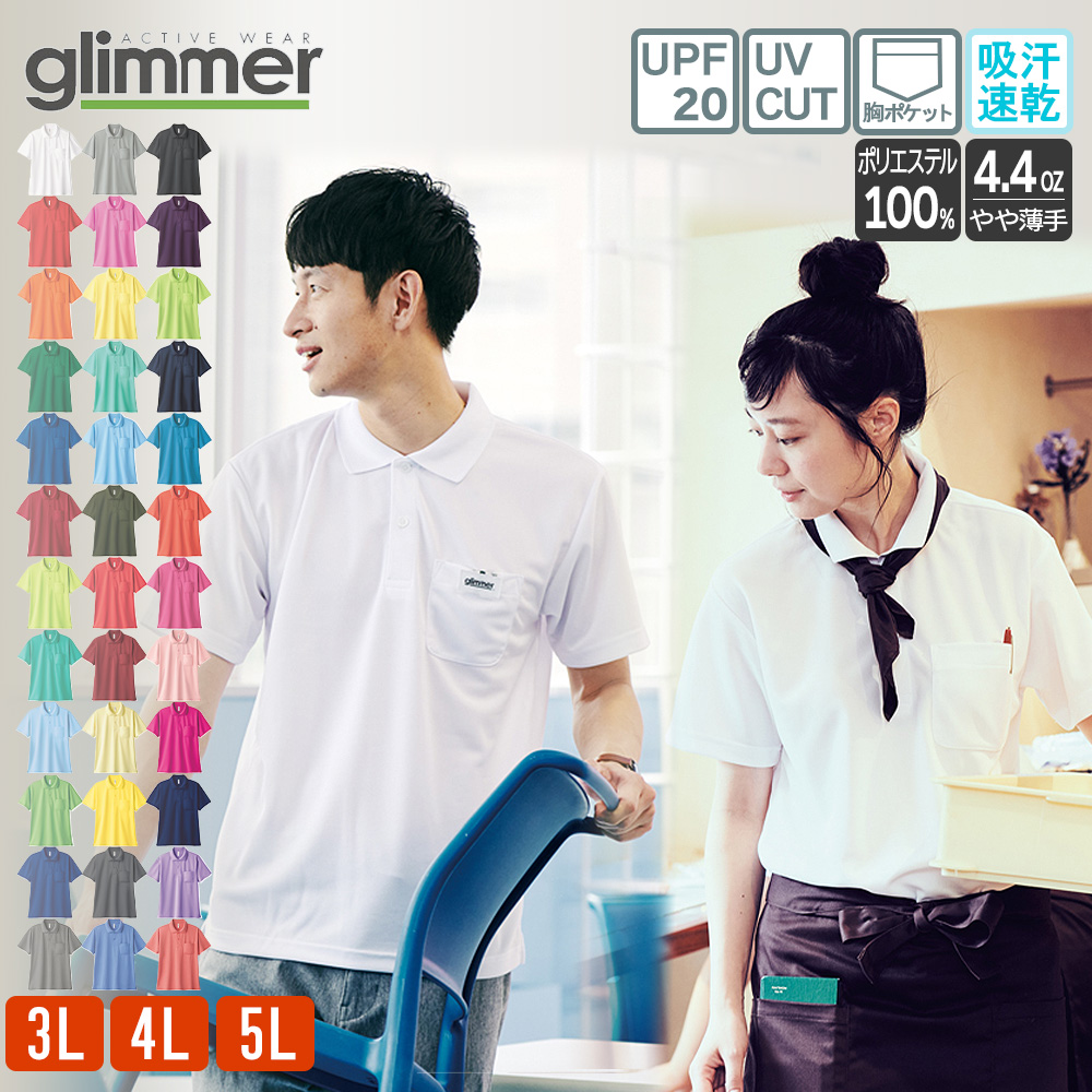 ポロシャツ メンズ 半袖 レディース ポケット 大きいサイズ 無地 速乾 白 黒 ドライ グリマー(glimmer) ポケットあり ポケット付き 4.4オンス 00330-AVP 330avp