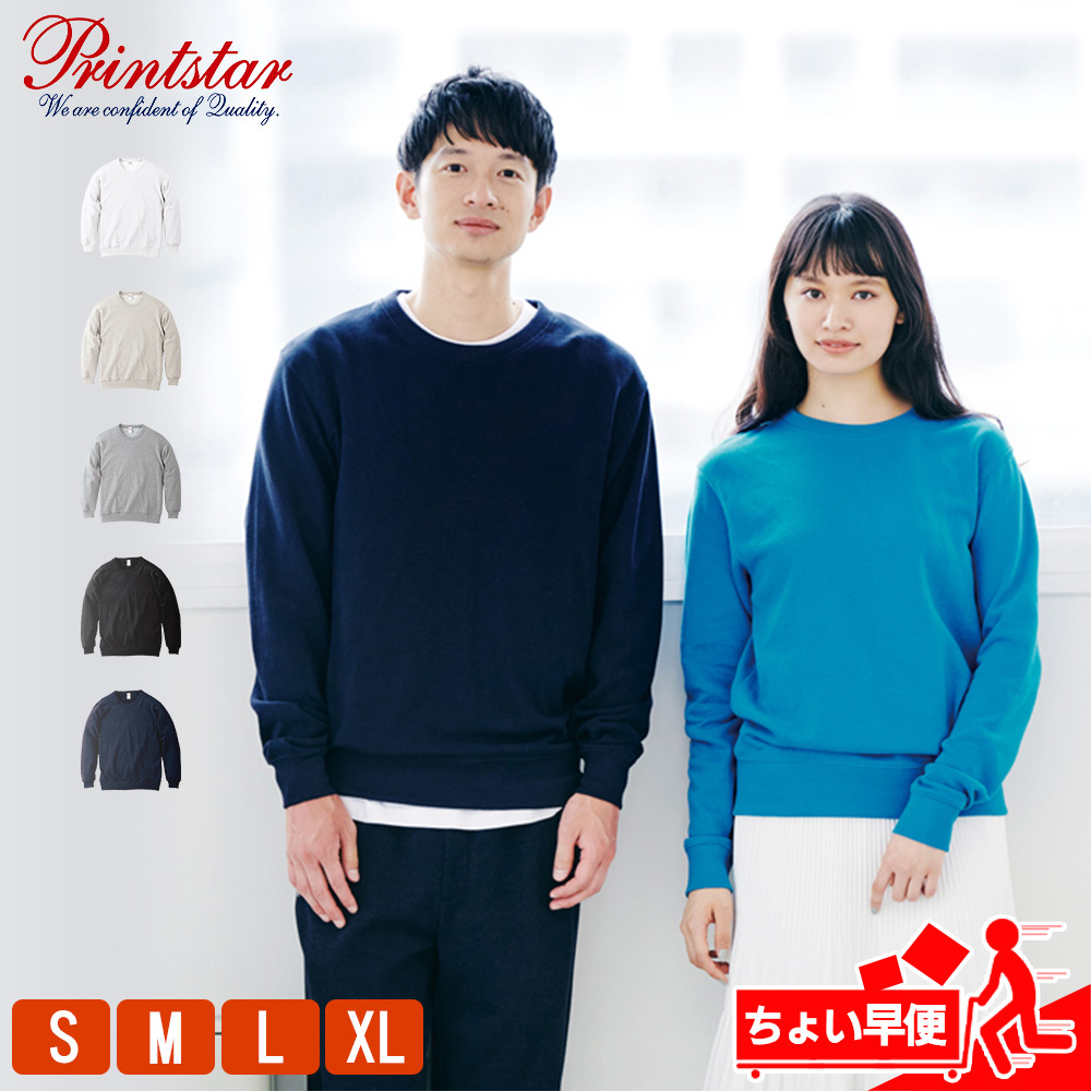 トレーナー メンズ スウェット レディース 無地 裏パイル 綿100% コットン 薄手 プリントスター(Printstar) 8.4オンス 00219 早
