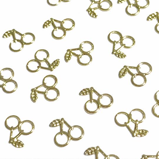 (10個セット)さくらんぼ デコパーツ ゴールド サクランボ チェリー 果物 フルーツ 薄型 貼り付け ネイル レジン ハンドメイド