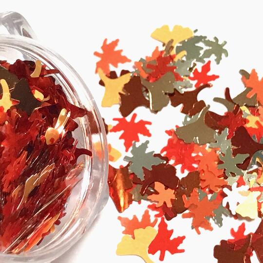 カエデとイチョウのホログラム デザインミックス カラーミックス 銀杏 紅葉 楓 オレンジ レッド リーフ 秋モチーフ ネイル レジン封入 パーツ ハンドメイド