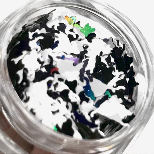 猫のホログラムH ブラック オーロラ ホワイト ネコ キャット レジン封入 シルエット 黒 白 ミックス パーツ ハンドメイド