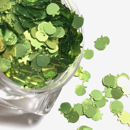 林檎のホログラムF 青リンゴ ライトグリーン 黄緑 りんご ネイル レジン封入 果物 フルーツ ハンドメイド パーツ
