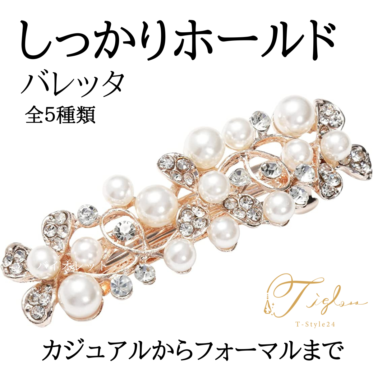バレッタ 髪留め パール 結婚式 キラキラ 髪飾り ヘアアクセサリー 大きめ 30代 40代 50代 フォーマル ヘアクリップ ギフト プレゼント 振袖 和装 ティグロス