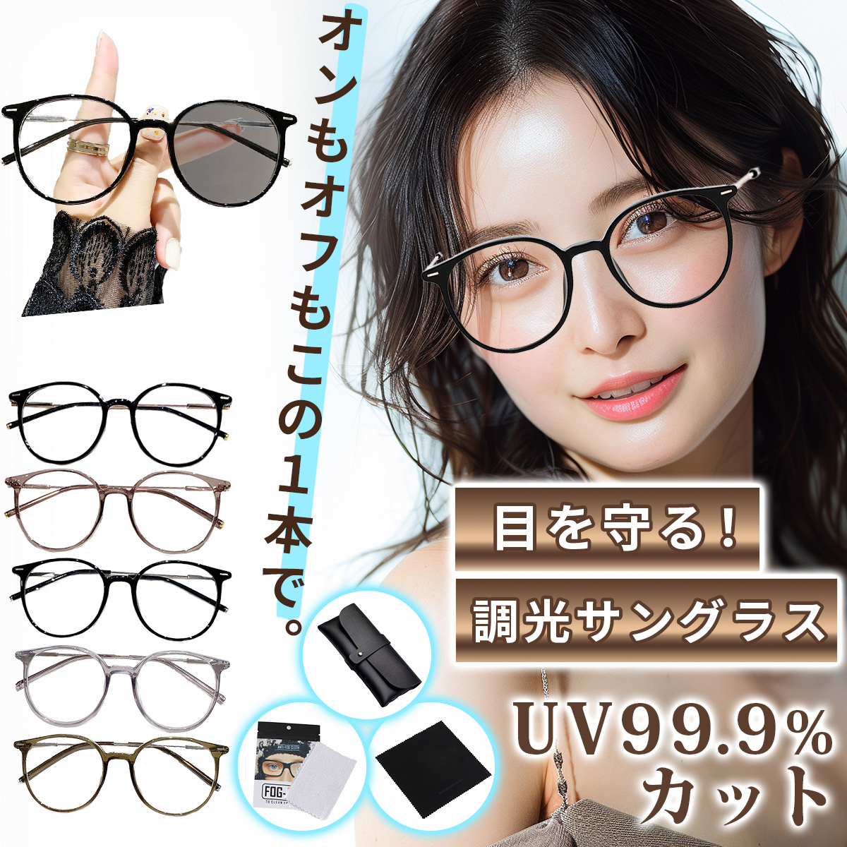 商品名:調光サングラス レディース ボストン UVカット ブルーライトカット 大きめ 軽量 サングラス 調光レンズ 40代 30代 20代
