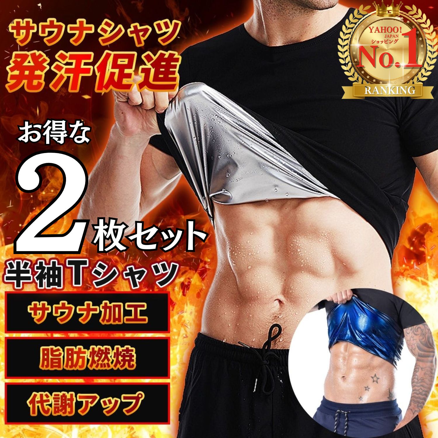 サウナスーツ シャツ メンズ 半袖 Tシャツ 効果 洗濯可能 大きいサイズ インナー ダイエット 引き締め フィットネス 発汗 防臭 上着 2枚セット
