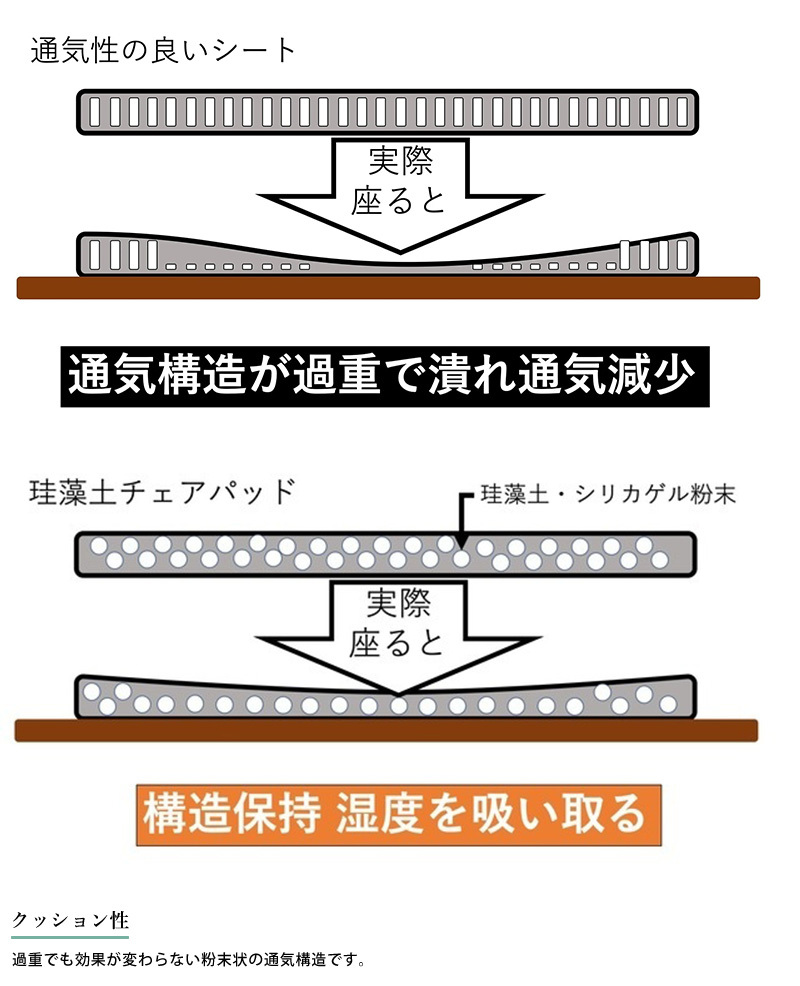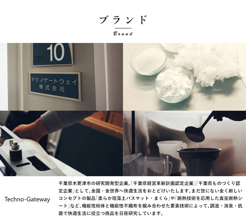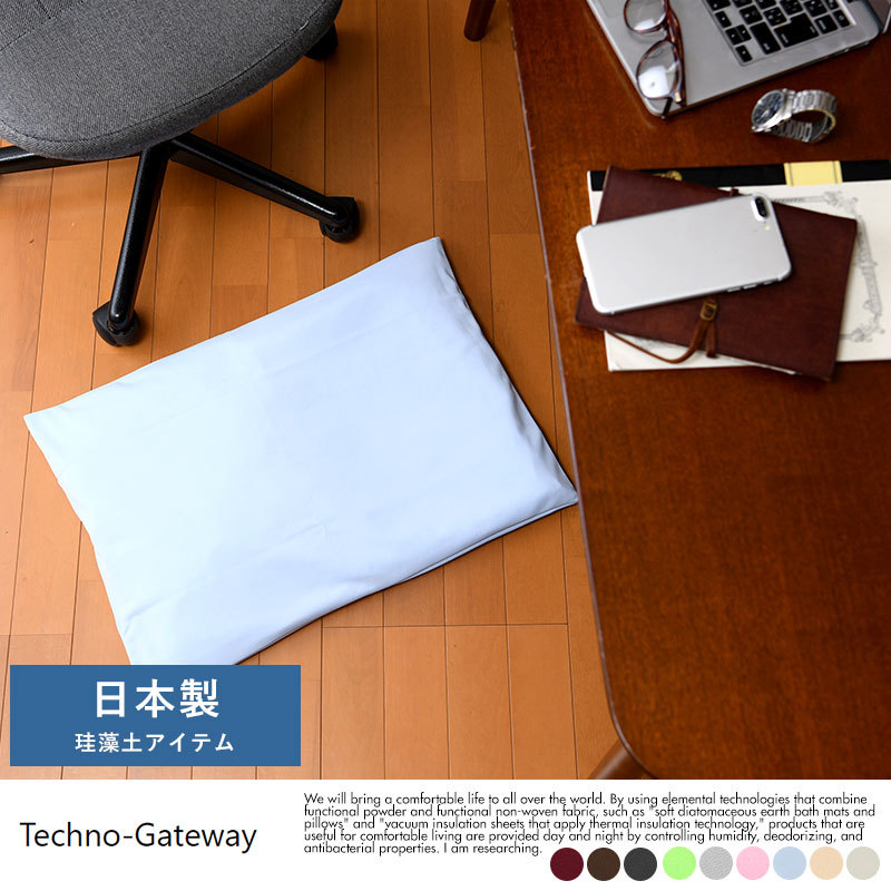 快適で清潔な足元をキープ 珪藻土フットクッション 柔らか珪藻土テクノロジーを活用し、高い通気性・消臭・抗菌機能を兼ね備えたフットクッション。粉末状の内部構造なので長時間座っていても通気構造がつぶれることがなく、快適な状態が続きます。消臭・抗菌性能も備えているので、衛生的にお使いいただくことが可能です。 |