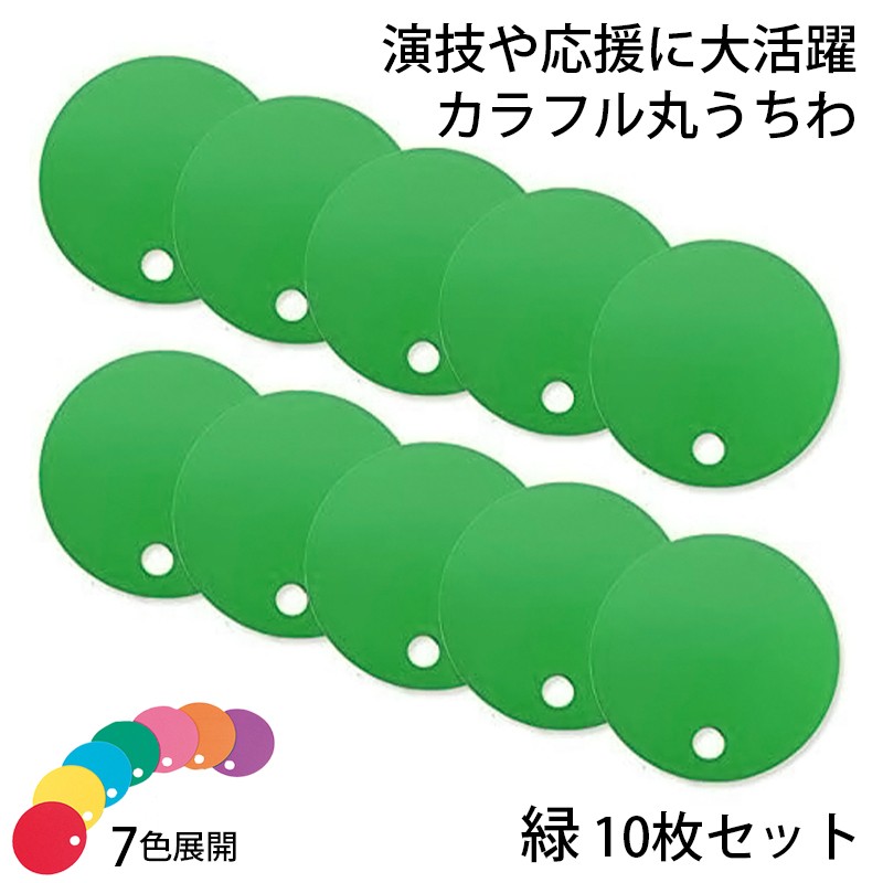 カラフル丸うちわ 10枚 緑 96774 (t01) サンワ 応援グッズ 工作