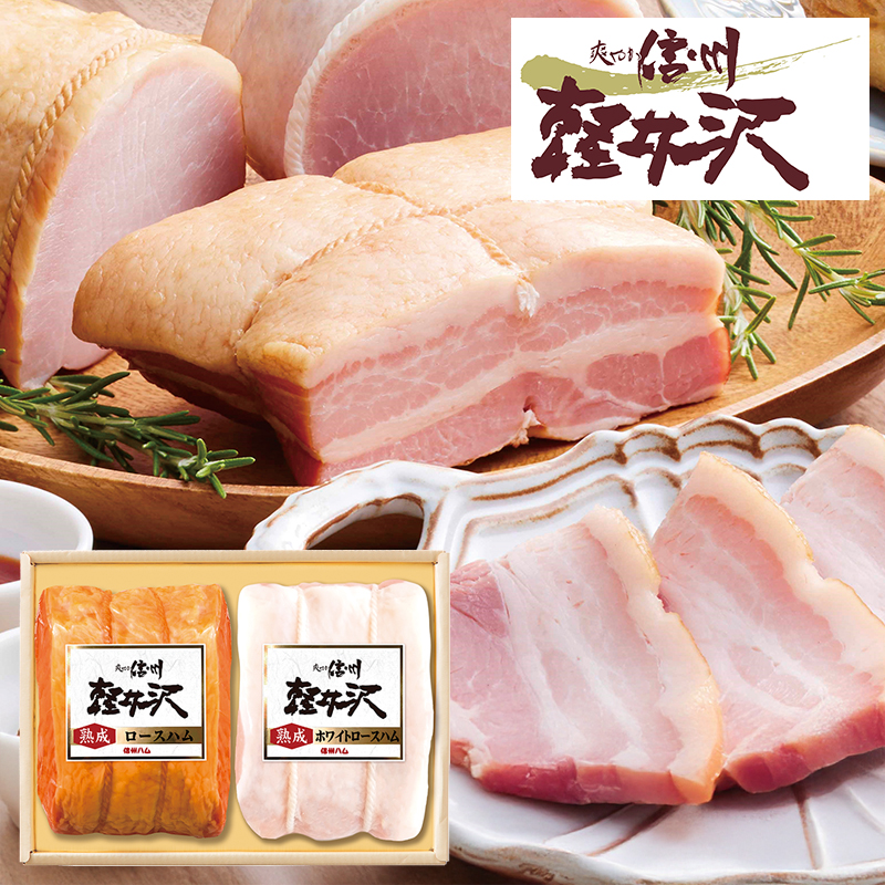 ●商品内容 軽井沢熟成ロースハム300g、軽井沢熟成ホワイトロースハム300g ●賞味期限:冷蔵50日