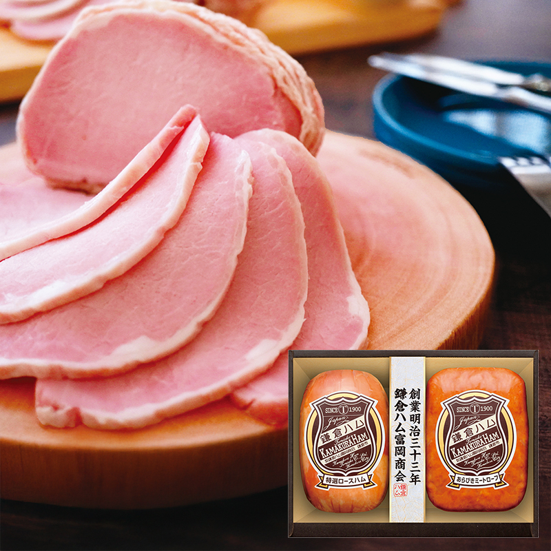 (産地直送・送料無料) 鎌倉ハム富岡商会 特選ロースハム・ ミートローフ2本詰め KDS-45T (-G1574-706A-) | 内祝い ギフト 出産内祝い 快気祝い お返し