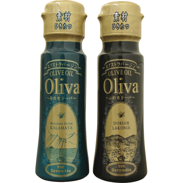 ギリシャ産限定エクストラバ-ジンオリ-ブオイル。香り華やかな海のオリ-バ、コクと甘みのある山のオリ-バの小瓶2本セット