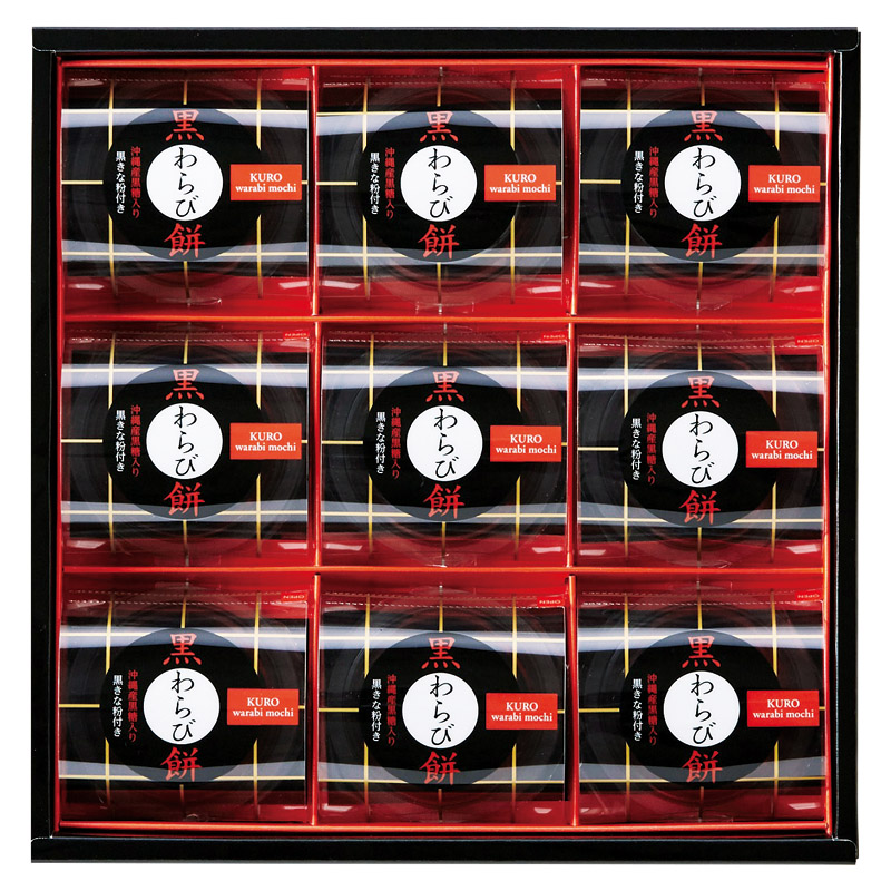●商品内容 黒わらび餅(89g)・黒きな粉(3.5g)×各9●パッケージサイズ:26.3×25.9×4.8cm ●賞味期限:製造日より常温6ヶ月