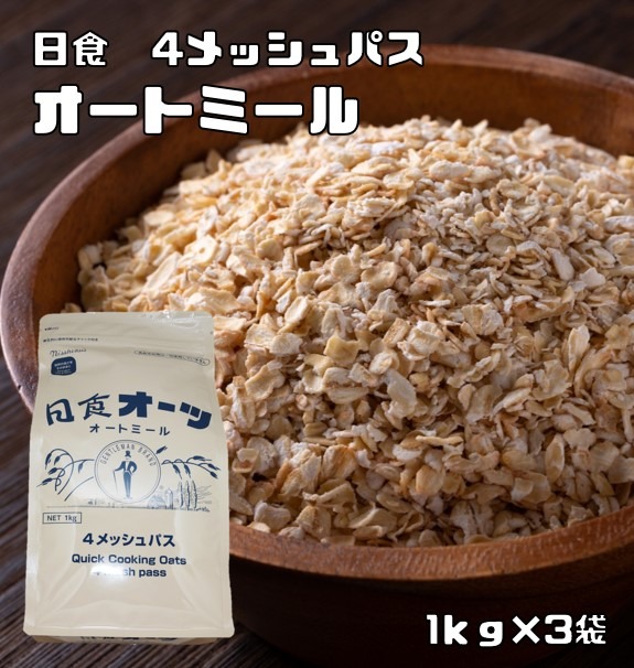 オートミール 1kg×3袋 日食 オーツ麦 素材にこだわった本格シリアル えん麦 麦 穀物 ロールドオーツ グラノーラ
