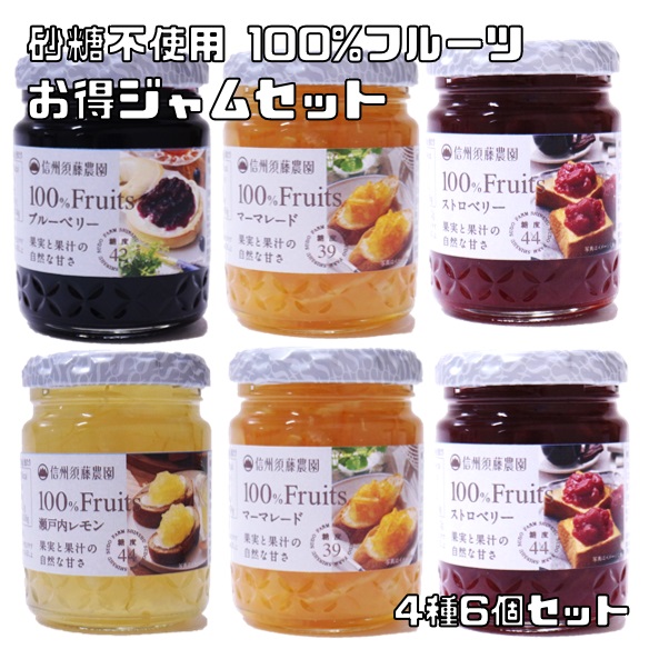 100%フルーツジャム 選べる6個セット 砂糖不使用 信州須藤農園 国産 スドージャム 高級 こだわり 詰め合わせ