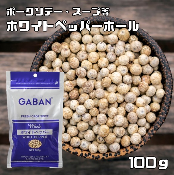 ホワイトペッパー ホール 100g GABAN スパイス 香辛料 粒 業務用 白胡椒 ギャバン 高品質 ハーブ