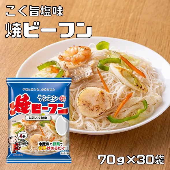 即席焼ビーフン こく旨塩味 70g×30袋 ケンミン食品 米麺 家庭用 簡単 インスタント ホタテ 調理時間4分 ノンフライ 即席麺