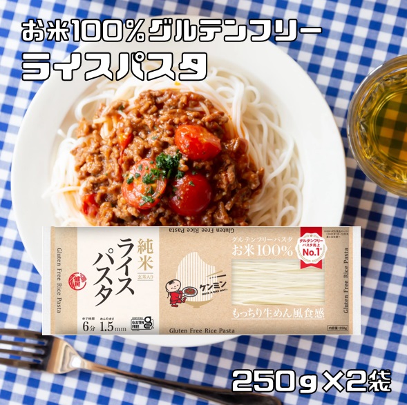 ライスパスタ 250g×2袋 ケンミン ゆで時間8分 米麺 家庭用 簡単 インスタント お米のめん ノンフライ 米パスタ グルテンフリー